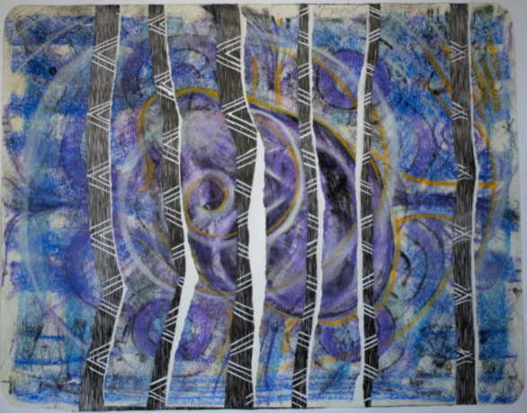 Parte de su propuesta son los collages que realiza con sus propias impresiones, describiendo un mundo que se fragmenta y se une constantemente.